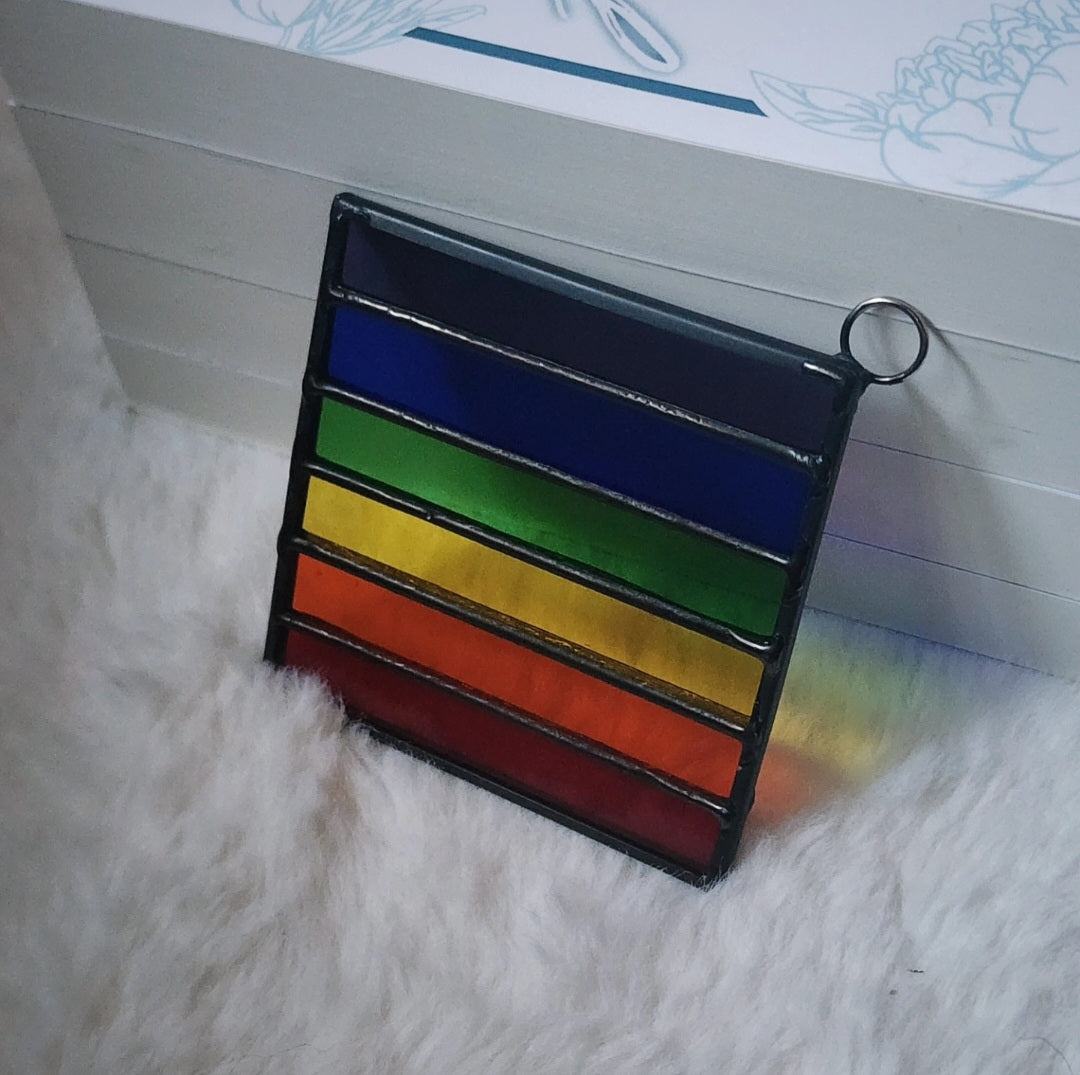 Made by Warrior Goddess Glass using water glass that causes beautiful, wavy rainbow refractions when the sun shines through it!