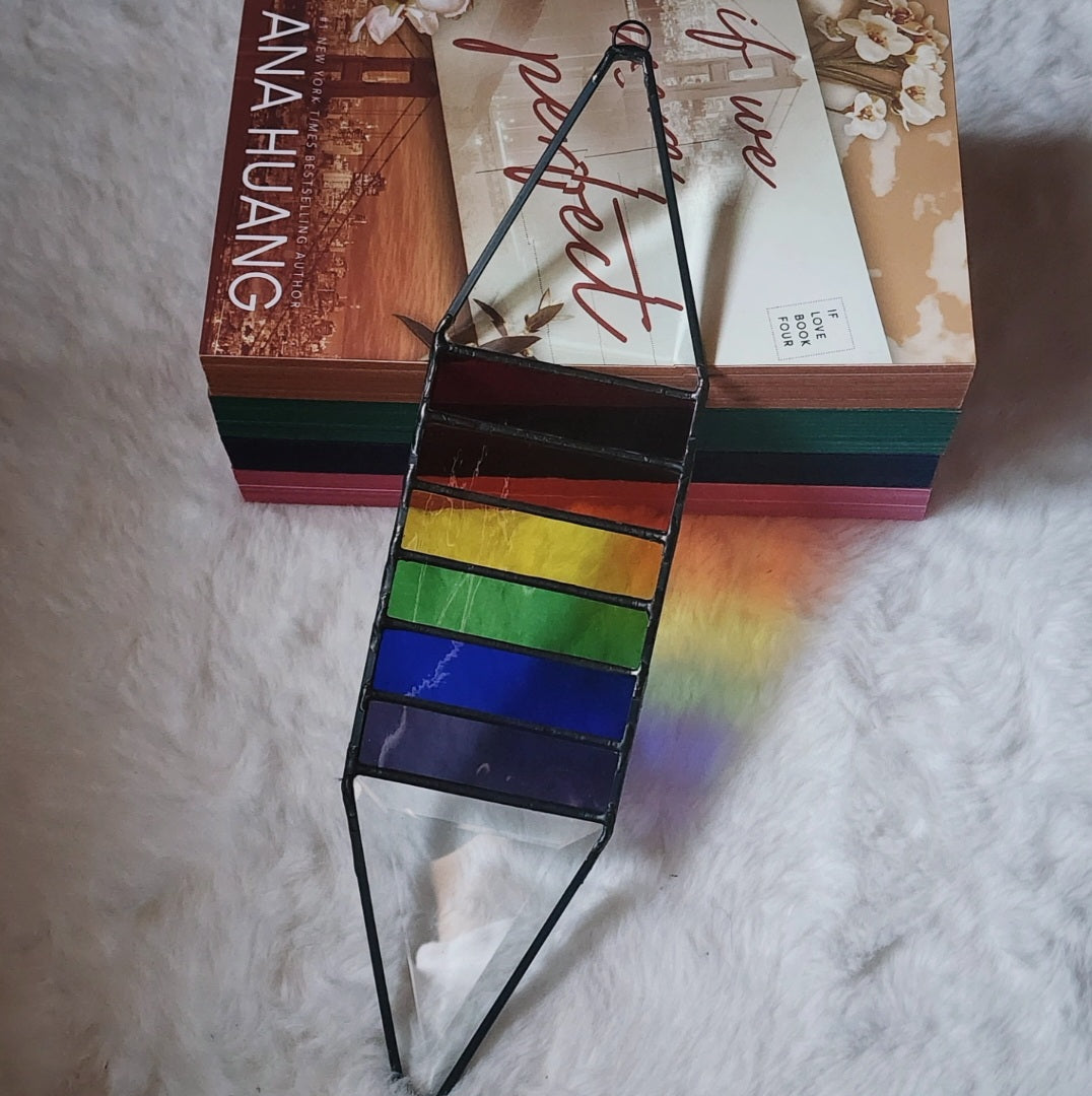 Made by Warrior Goddess Glass using water glass and crystal bevels at each end that create beautiful rainbow refractions when the sun shines through it!
